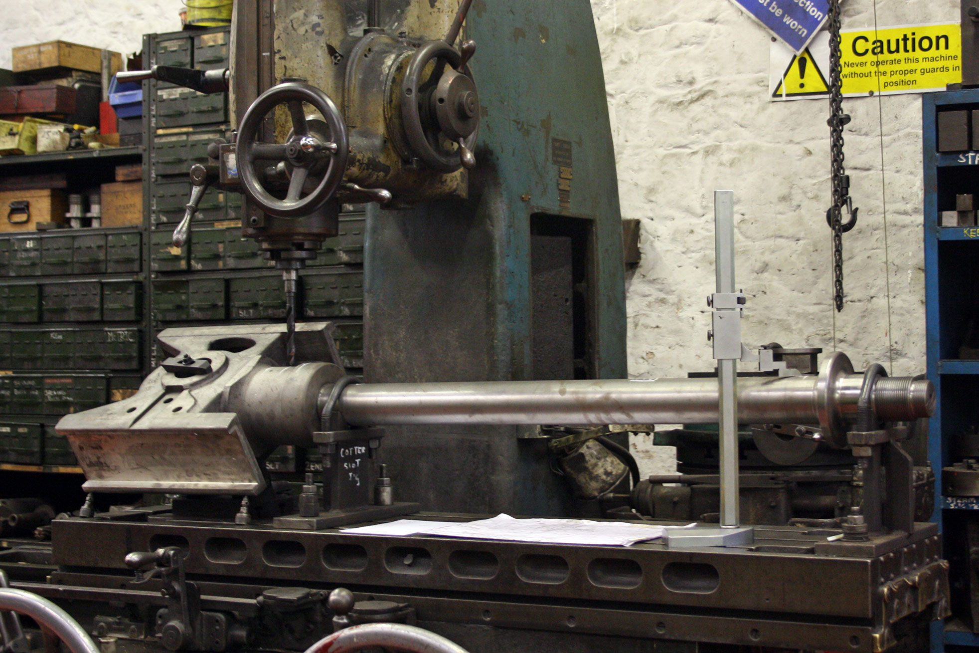 The first of the two crossheads is on the jig borer for machining of the tapered slot for the key which secures the piston rod to the crosshead. An order has been placed with South Devon Railway Engineering for the manufacture of the expansion links and die blocks. Forging of the eccentric rods and the reversing rod is expected soon in Manchester by Heritage Rail Traction Ltd.
