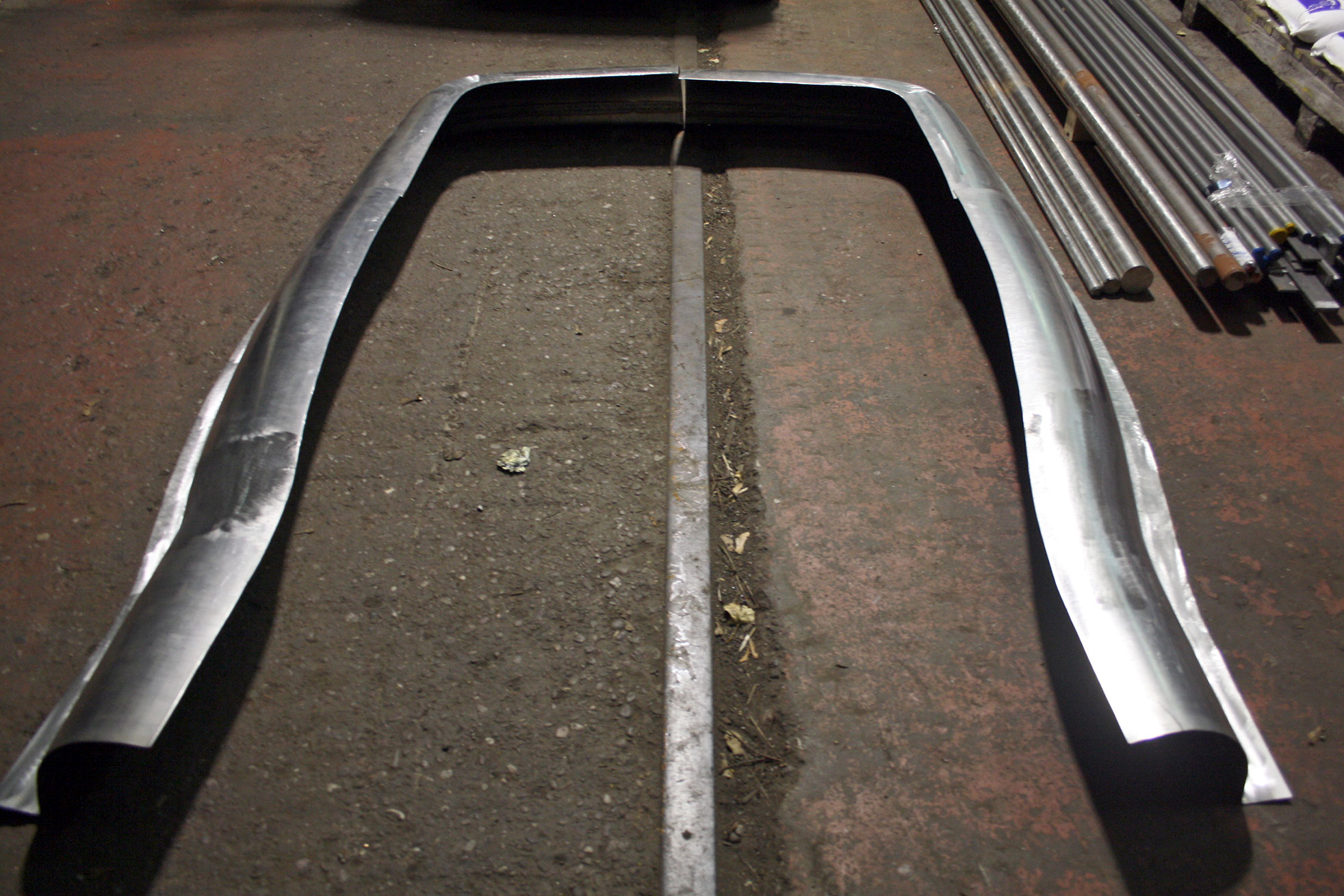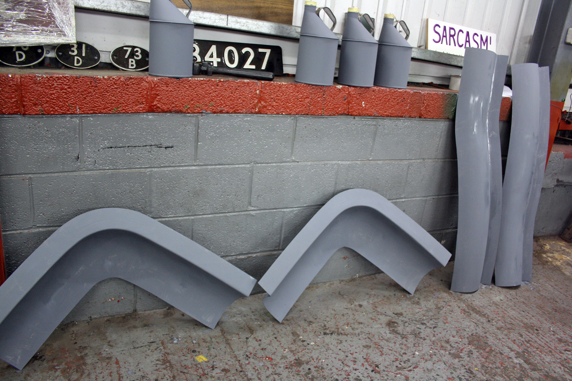 A local panel beater has manufactured the complex corner sections of cladding for the firebox backhead inside the cab. Holes in these will have to be made where they fit over washout plugs and other components.